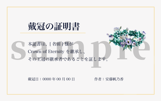 本作品をご購入いただいた方は、特典として「戴冠の証明書」をダウンロードいただけます。