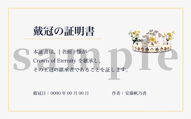 本作品をご購入いただいた方は、特典として「戴冠の証明書」をダウンロードいただけます。